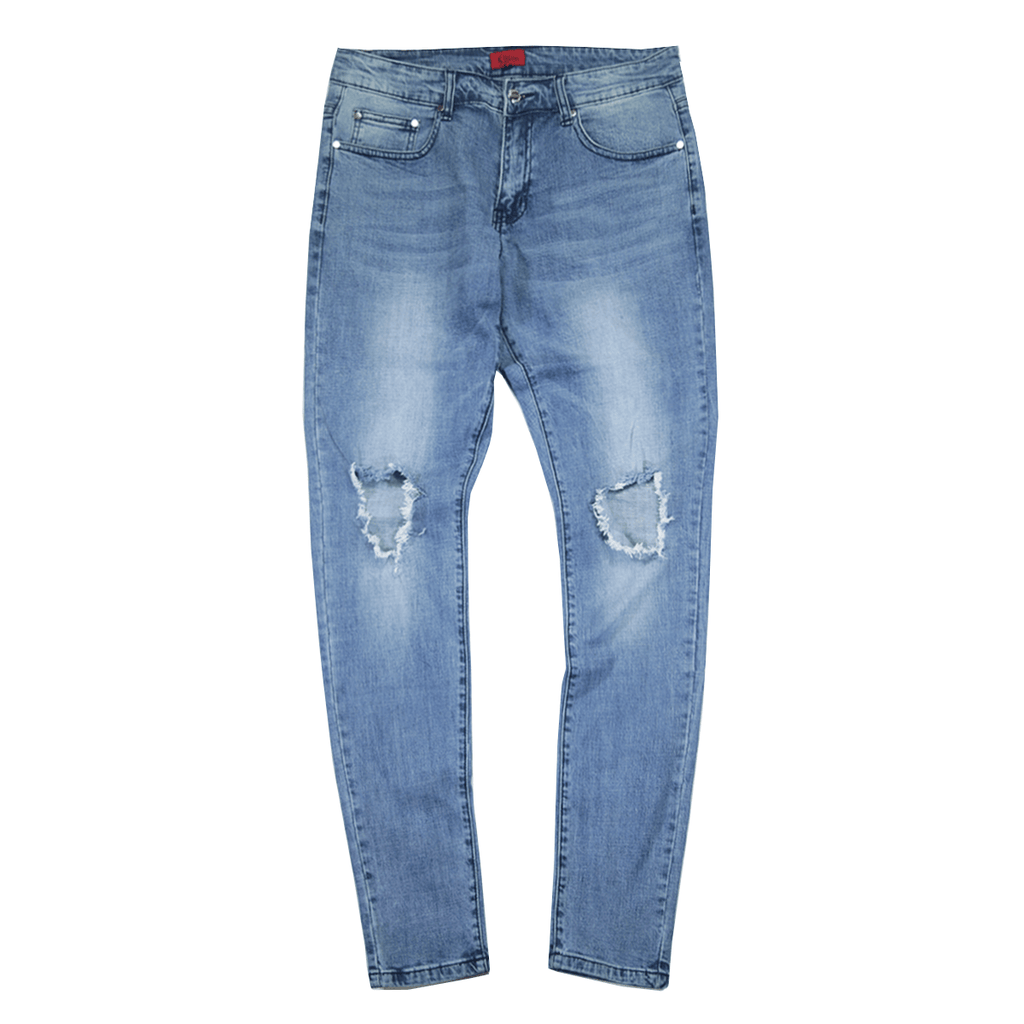 Destroyed Knee Rip Denim Jeans - Medium Blue