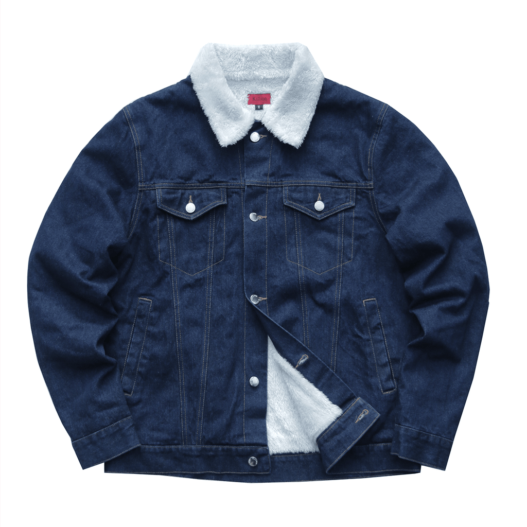 Updated body for our classic denim jacket. It is made from 13oz 100% cotton, with beige FULL sherpa lining, including the sleeves. This product is a perfect for keeping you warm during cooler temperatures.