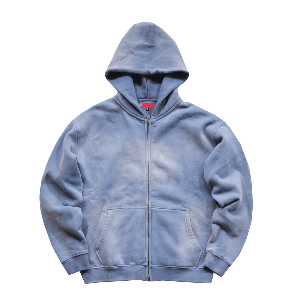 Drop Shoulder Full Zip Hoodie - Washed Blue
