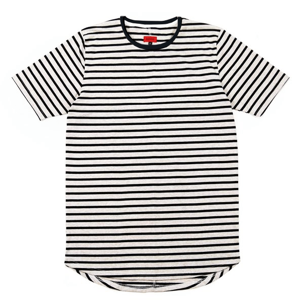 Striped cotton blend material. True comfort and style. Features a french split back seam. Stay true to size for the updated modern fit with a nice length or size up for an oversized drape look and styling.