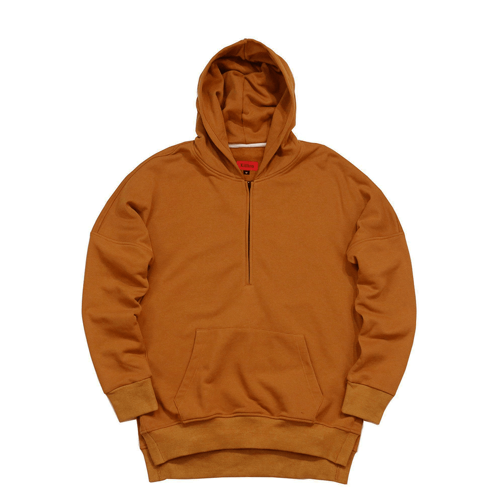 Side Cut Quarter Zip Hoodie - Tan Brown