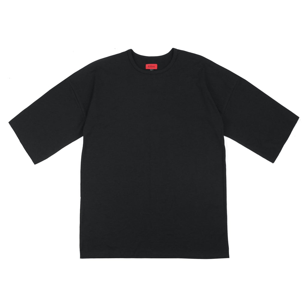A 3/4th sleeve shirt with a dropped shoulder design. Features loose raw sleeves on a boxy fit.