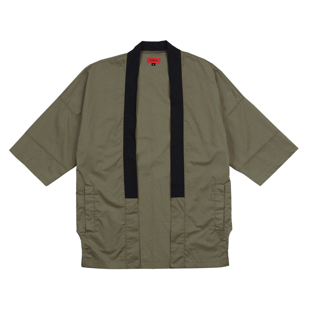 Our modern kimono features a dropped shoulder design with a 3/4th sleeve and a side hem opening. Constructed from fine poplin.