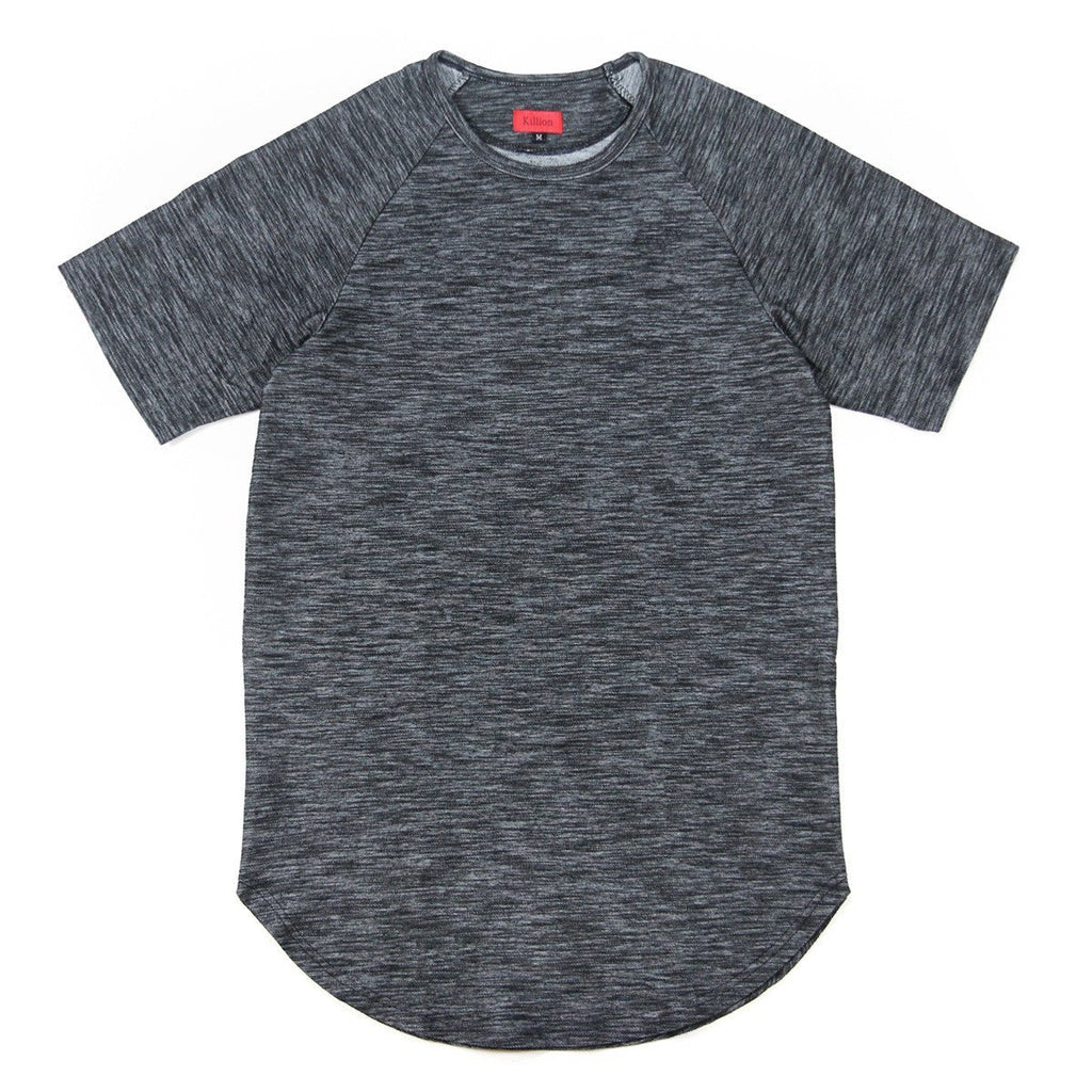 An elongated shirt with a scalloped hem detail. The material is made from brushed melange with a tonal reversed end so you can roll up the sleeves for added styling. It comes with slightly wider neck opening and a raglan cut. Size down for a slimmer/shorter desired cut or pick up your usual size for the oversized fit. Perfect for premium layering under.