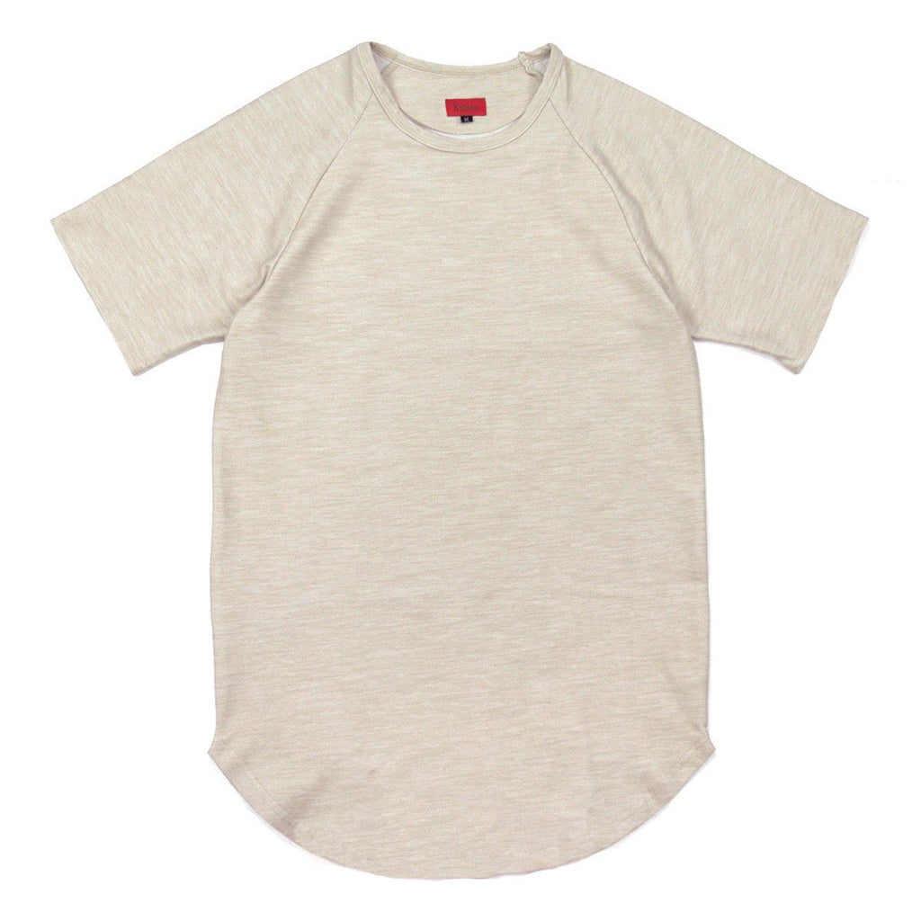 An elongated shirt with a scalloped hem detail. The material is made from brushed melange with a tonal reversed end so you can roll up the sleeves for added styling. It comes with slightly wider neck opening and a raglan cut. Size down for a slimmer/shorter desired cut or pick up your usual size for the oversized fit. Perfect for premium layering under.