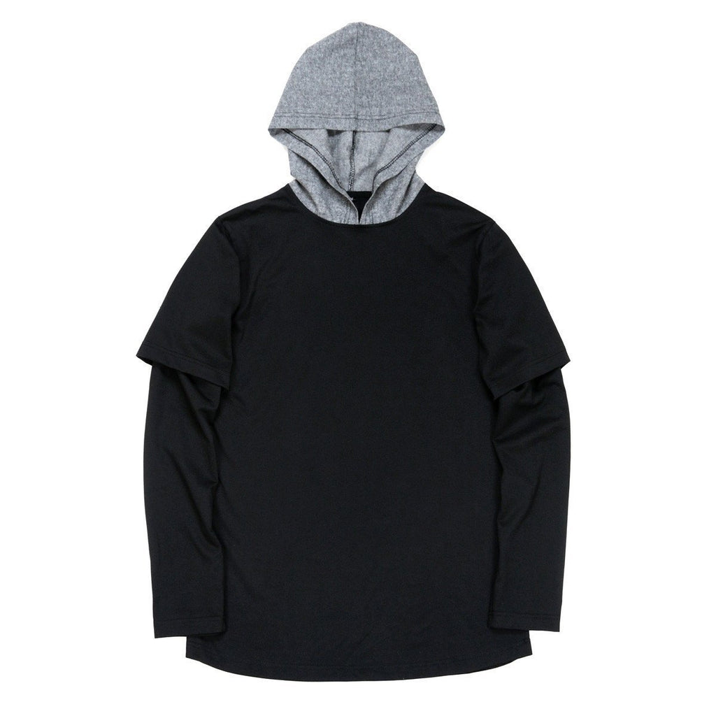 Double sleeve design essential for a natural layering look with a refined fit. Features a chambray hood to complement it's simplicity. Made from our premium custom-milled technical blend cotton jersey which has dri-fit features and retains its smooth hand-surface during wear.