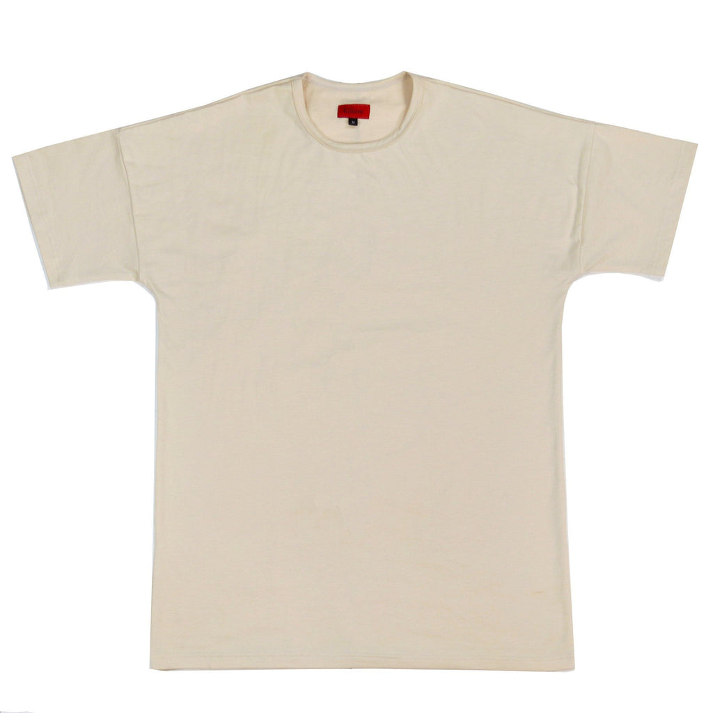 Soft brushed Cotton/Poly jersey knit. Features a boxy fit with a subtle dropped shoulder design and regular length.