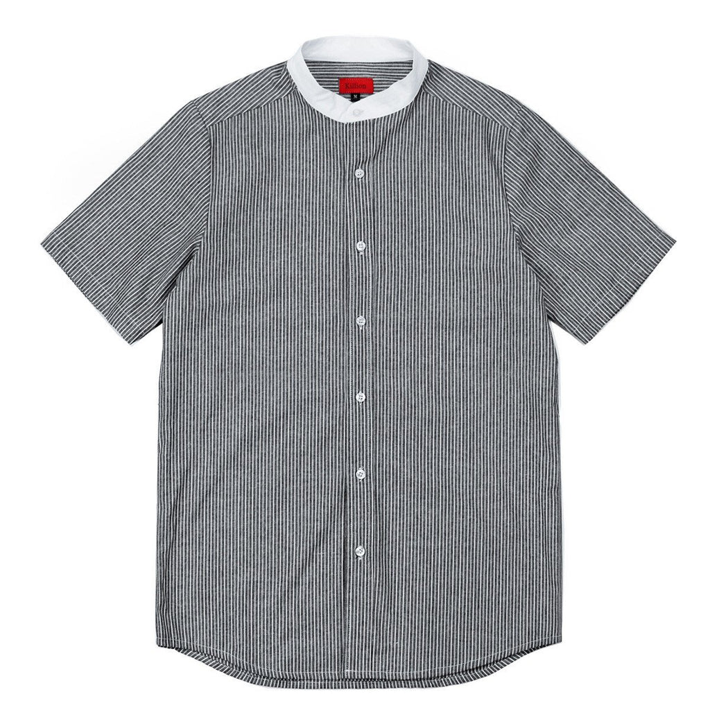 The Grandview Buttonup features a grandad white collar contrasting its striped body. A casual top that is comfortable and easy to wear.
