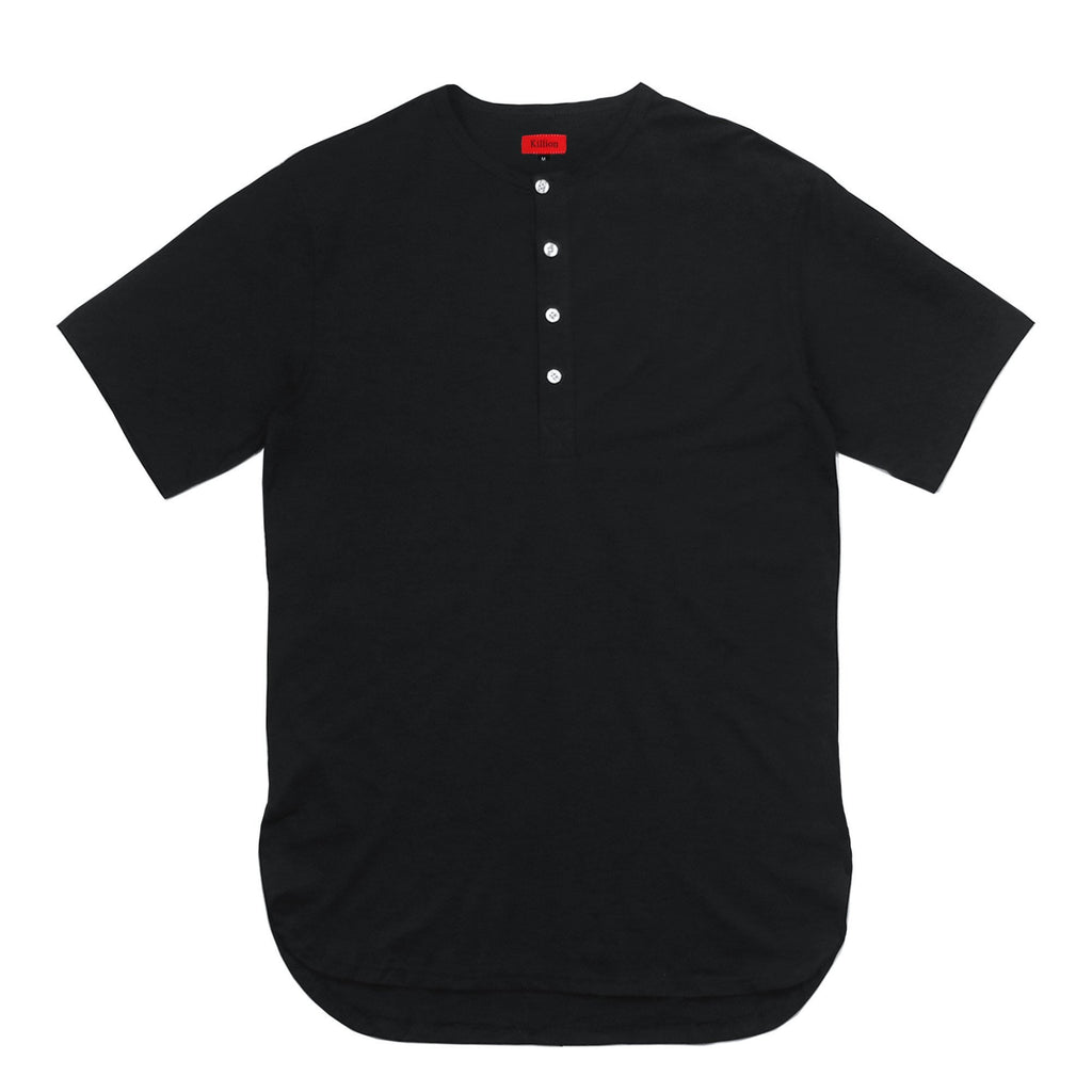 Constructed from a comfortable 180gsm cotton jersey, this is a timeless henley shirt wearable on all occasions. Features a half-scoop hem with an extended back. True-to-size.