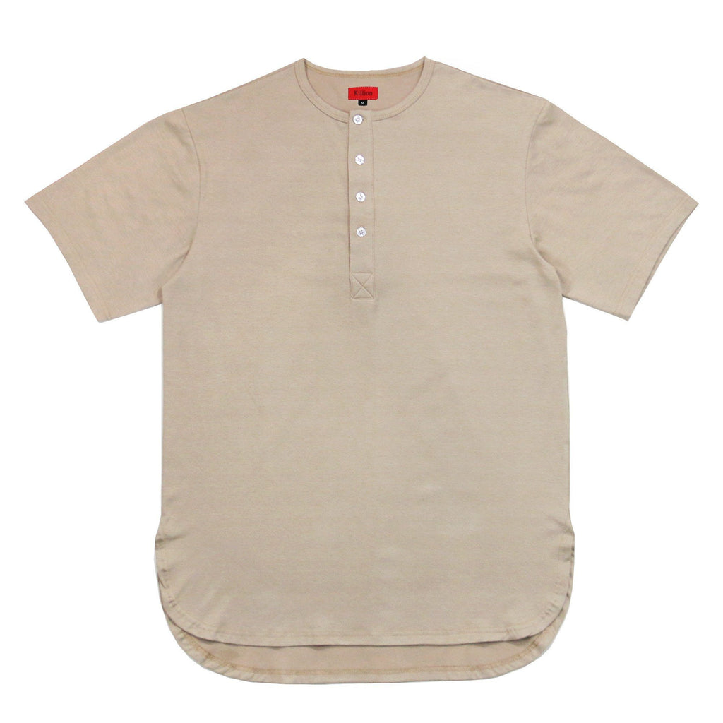 Constructed from a comfortable 180gsm cotton jersey, this is a timeless henley shirt wearable on all occasions. Features a half-scoop hem with an extended back. True-to-size.