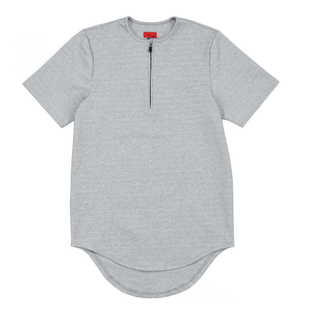 A slightly elongated shirt with a scalloped hem. It is made from a comfortable tech cotton/poly blend material with a similar feel to our signature Tech Roma material.