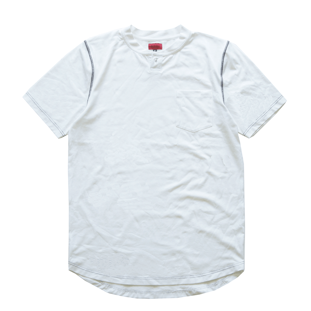 Introducing a new body through this unique capsule collection tee. Constructed from breathable and comfortable jersey cotton blend with tonal visible stitching for detail. Features a henley-like one button neck detail, with a detailed cut neck ribbing finish and a single chest front pocket. Bottom hem is slightly scalloped (Similar to our SI-12).