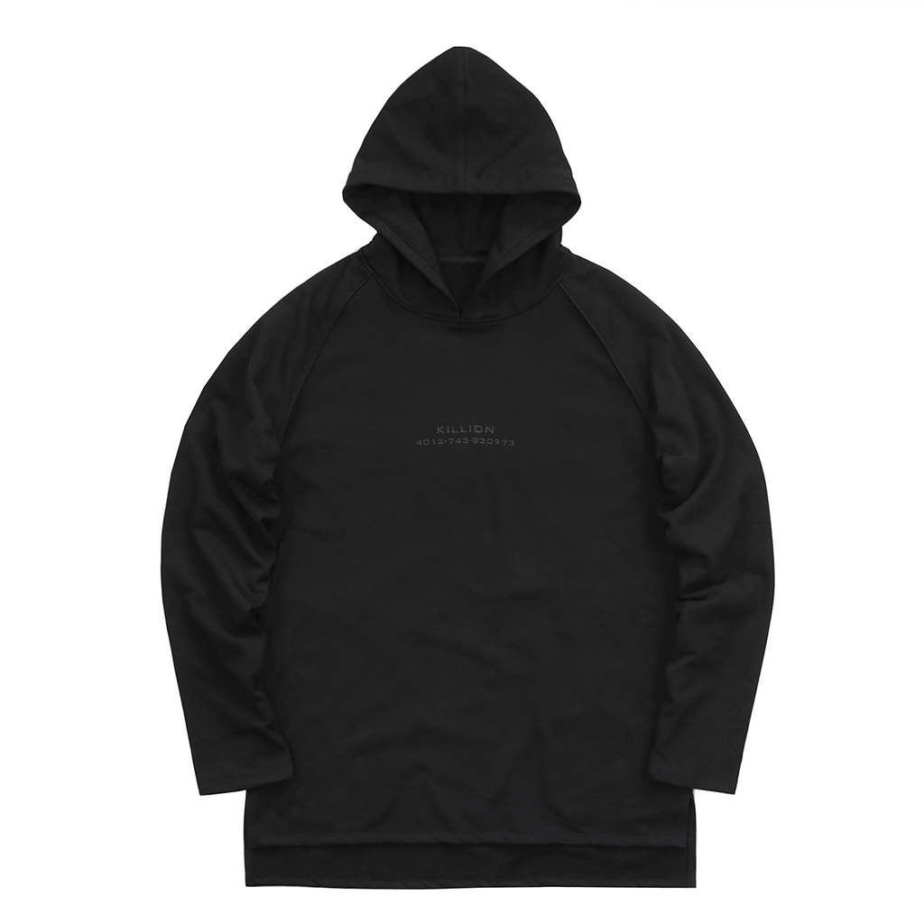This lightweight terry hoodie features piping detail on both front and back raglan seams, hi-low split hem, side seam pockets, and tonal print at chest.