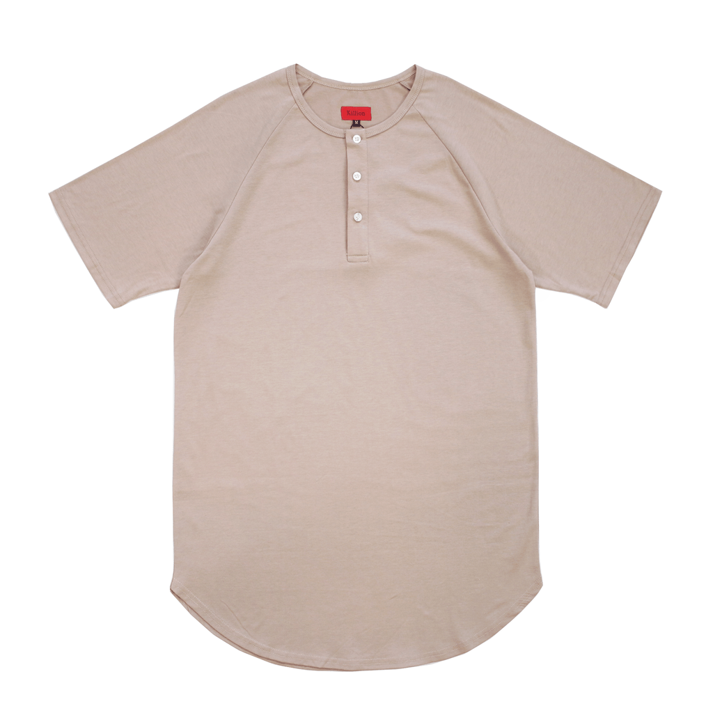 Constructed from a comfortable 180gsm cotton jersey, this is a timeless henley shirt wearable on all occasions. Features a half-scoop hem with an extended back. True-to-size.