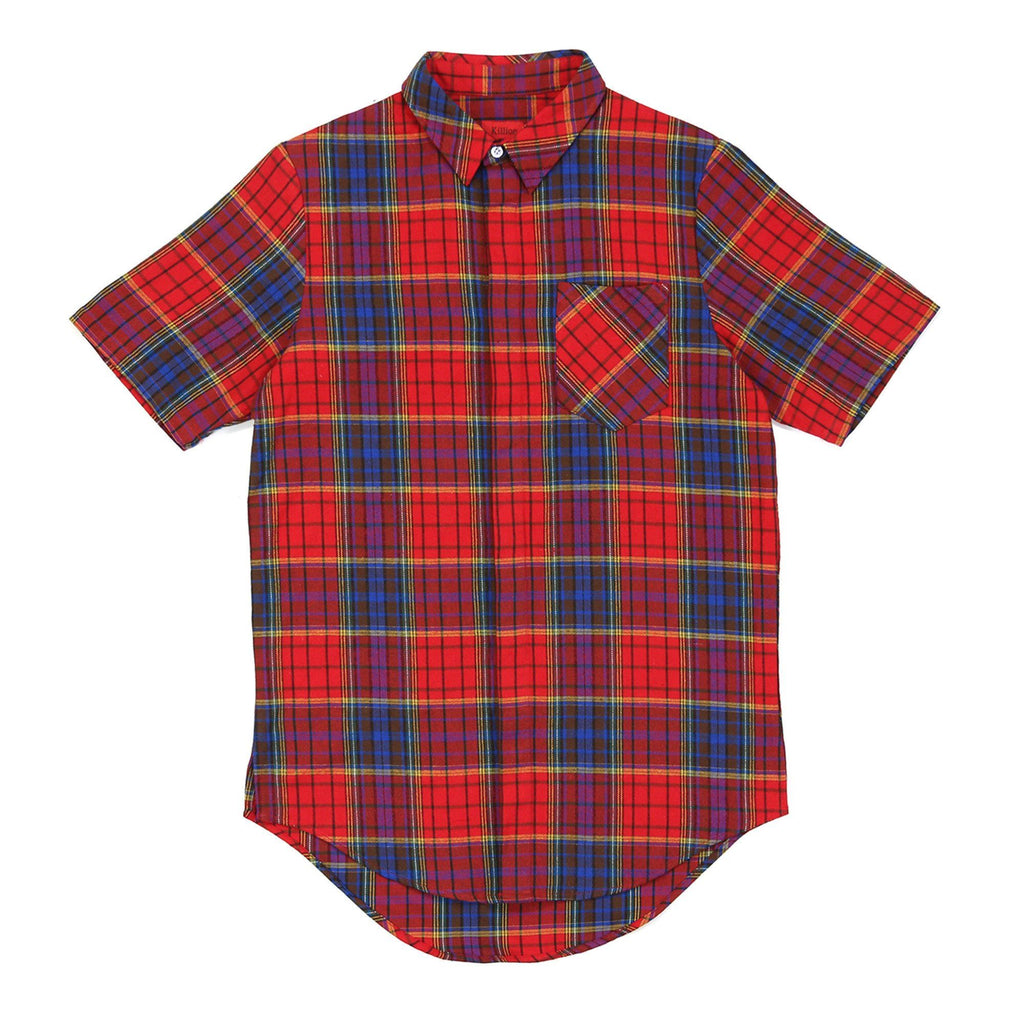 Lightweight short sleeve button up shirt. It features hidden buttons and an elongated fit with an extended back.