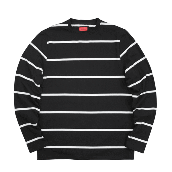 Cotton blend long sleeve shirt in wide stripe pattern and a flat hem.