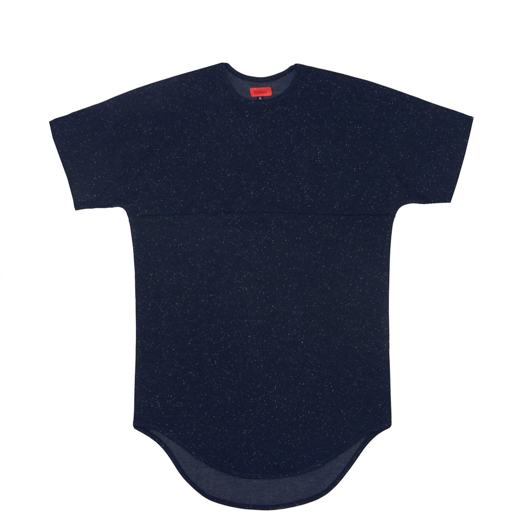 Special cotton blend material with a speckled dot pattern. The dropped shoulder SS has a split chest detail and a scalloped hem with an extended back.