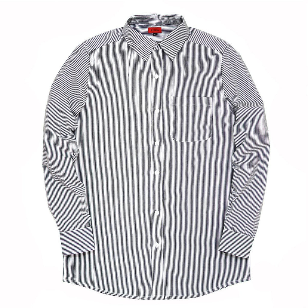 For a cleaner look this spring, we offer a classic long sleeve shirt with a simple vertical striped pattern. This sophisticated yet simple and basic piece can be dressed down or up for any occasion.