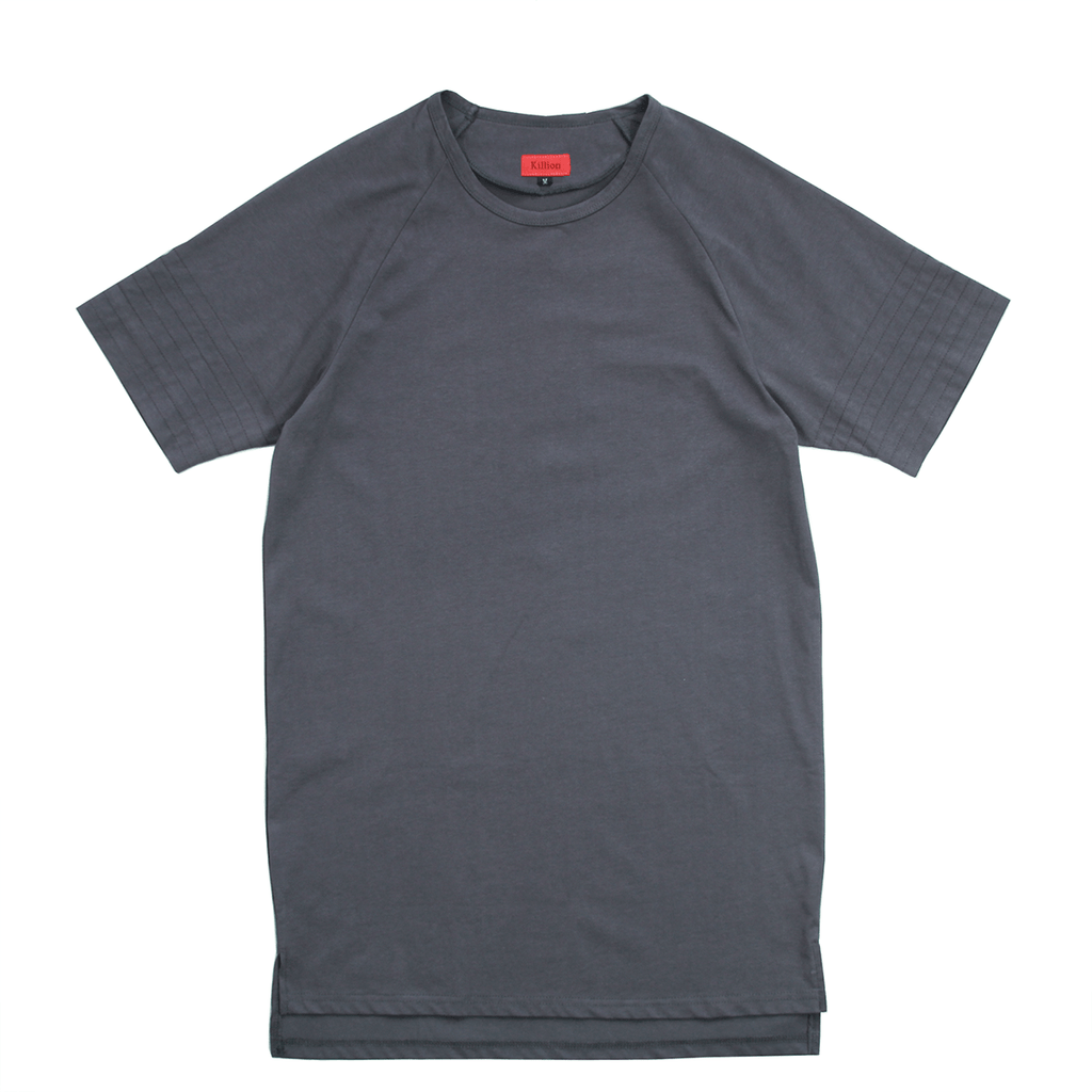 Our unique take on the elongated tee features a raglan cut with quilted sleeve details and a side-split bottom hem with an extended backside. Made from our updated custom-milled technical blend cotton jersey.