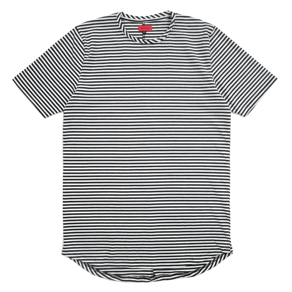 Striped cotton blend material. True comfort and style. Features a french split back seam. Stay true to size for the updated modern fit with a nice length or size up for an oversized drape look and styling.