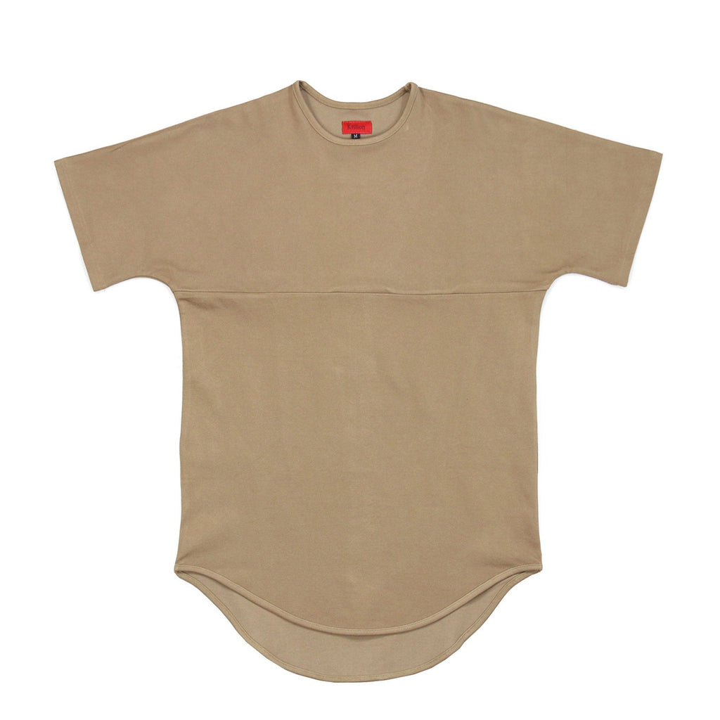 A slightly elongated shirt with a scalloped hem. It is made from a quality stretch twill cotton material.