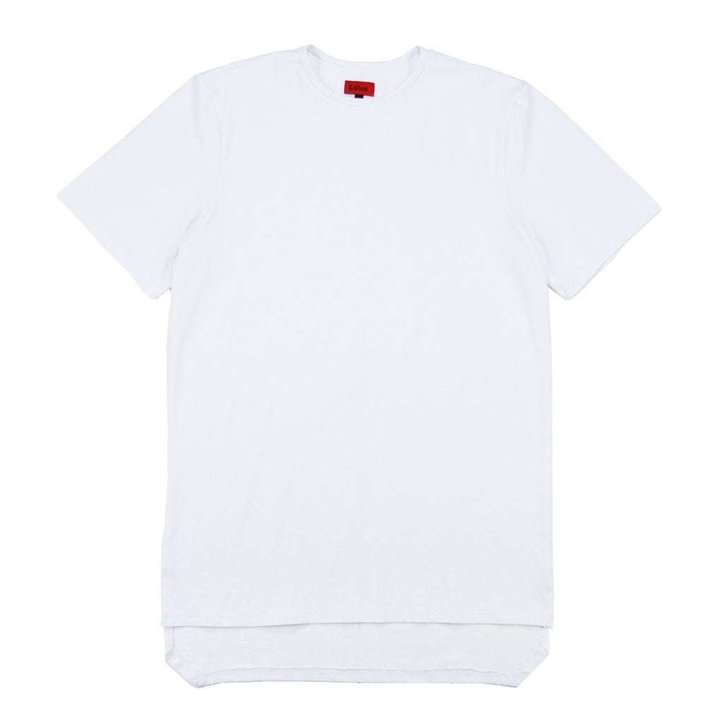 Cotton/Spandex jersey blend. Features an elongated back with asymmetric edges.