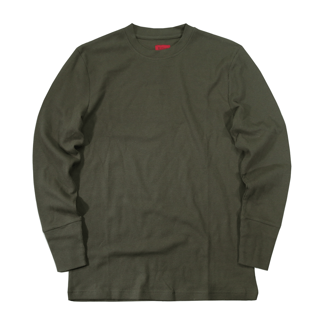 Original Waffle knit cotton long sleeve shirt with a ribbed neck and extended wrist rib detail.